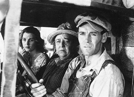 El protagonista Tom Joad se encuentra en libertad condicional tras una condena de cuatro años por homicidio, entonces, acompañado por Jim Casy, el antiguo predicador, vuelve a la granja con su familia. No obstante, la idea de volver a casa no le agrada, pues la tierra de Oklahoma de la que es originario se encuentra arruinada por la sequía, la cual ha empobrecido a los pequeños propietarios, dejándoles a merced de los acreedores, que no dudan en expulsarlos de sus tierras. Ante la necesidad de encontrar una vida mejor, fuera de la miseria, Tom y su familia emprenden una odisea en busca de trabajo y prosperidad. Inician un viaje hacia California en un camión destartalado, el viaje es tan largo y duro que mueren los abuelos por el camino. Su desaparición durante el viaje les convierte en presa fácil de empresarios sin escrúpulos que les explotan, dándoles trabajo a cambio de poco dinero y alojándolos en muy malas condiciones. SENSACINE, “Las uvas de la ira”, disponible en http://www.sensacine.com/peliculas/pelicula-1268/ [Fecha de consulta: 20/02/2019]